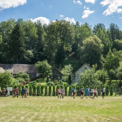 Antrąją žygio dieną stačiais Merkio krantais keliavome Mardasavo link, mediniu tiltuku persikėlėme per Merkį, vėliau maudynės Glyno ežero pakrantėje. Po pietų tyrinėjome Merkio atodangas, praėjome Merkio regyklą ir išdidus Vaikštūnų 2 dienų žygio su kuprinėmis 🥾🎒 finišas - #pasauliopuodai ! Ten gardus maistas ir puiki atmosfera 🧐 2 d. Maršrutas. Puvočiai – Mardasavas – Glynas – Merkinė – Pasaulio puodai!