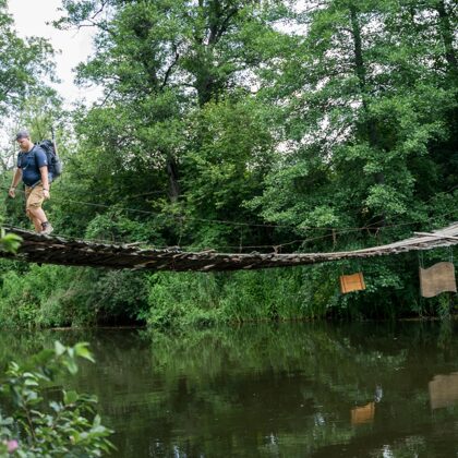Pirmąją dieną startavome Merkinėje, iš ten tiesiai į Dzūkijos miškus! Ėjome keliais, proskynomis, navigavome bekele, aplankėme Merkinės piramidę, tyrinėjome Nemuno krantus, suradome Balčiaus bunkerį. galiausiai vakare įkūrėme palapinių stovyklą. Vakaronė ir nakvynė stovyklavietėje Dzūkijos nacionaliniame parke. 1 d. Maršrutas. Merkinė - Česukai - Krušonys - Viršurodukis - Puvočiai.