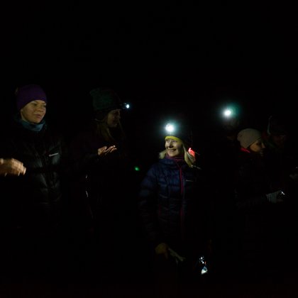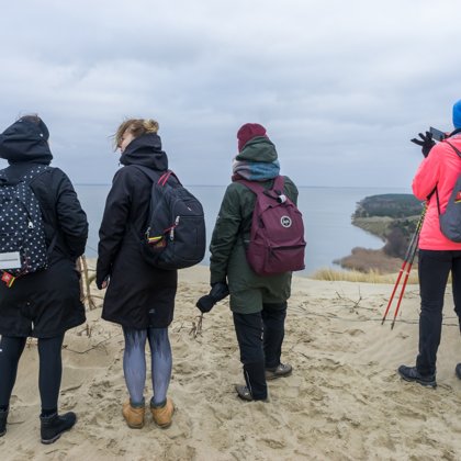 Ėjome įvairia danga ir vietove, paplūdimiu, lipome ant iškiliausių kopų. Ne kartą sutikome stirnas, briedžius, kiškius, sprunkančius iš po kojų, ir alei nei vienos žmogaus dūšelės maršrute. Žygeiviai kažkodėl buvo labai ištvermingi, tad iki vidurnakčio dar ir Raganų kalne skulptūras gąsdino. Antrą dieną miškingomis proskynomis, kormoranų paženklintais miškais, Mirusiųjų kopų takais nukeliavome iki pat Preilos.